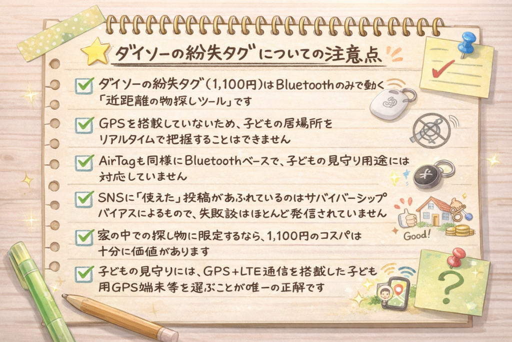 まとめ|ダイソー紛失タグは子どもの見守りには使えない
