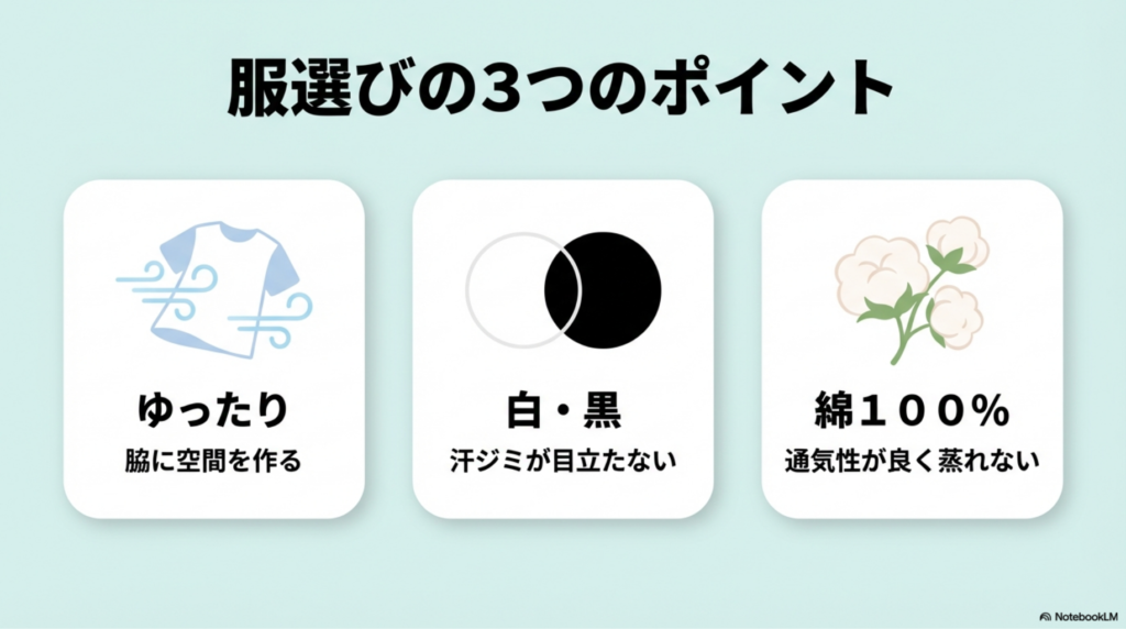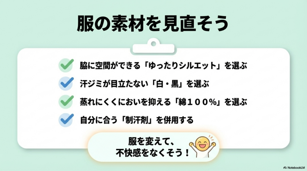 「服選びを変えるだけでも脇汗の不快感やにおいがかなり変わる」